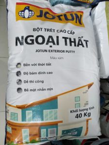 - Bột Jotun ngoài trời: Jotun Putty Exterior ( Còn gọi là bột Jotun ngoài màu xám) có giá là 293.000/1 bao 40 kg
