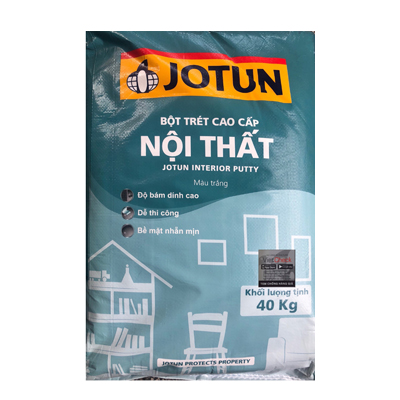 Bột trét trong nhà Jotun Interior Putty dùng cho bề mặt nội thất. Dùng để tạo phẳng các bề mặt hồ vữa, bê tông, đúc sẵn để che lấp các lỗ nhỏ hoặc các khiếm khuyết khác của bề mặt nội thất trước khi sơn lớp lót và sơn hoàn thiện.